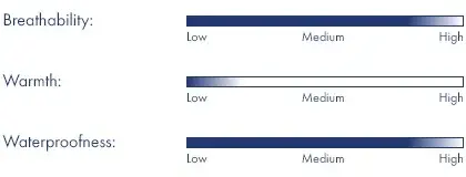 • Ανθεκτική υδροαπωθητική επίστρωση DWR που αποτρέπει την απορρόφηση νερού και βοηθά το ύφασμα να στεγνώνει γρήγορα