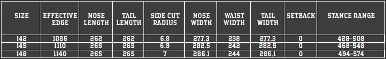 - Camber Profile: Smooth Classic Camber - Προσφέρει μέγιστο pop, ισχυρή επιστροφή ενέργειας, σταθερή και "σφιχτή" αίσθηση σε υψηλές ταχύτητες και καλύτερη ακρίβεια σε carve και edge-hold σε σκληρό χιόνι